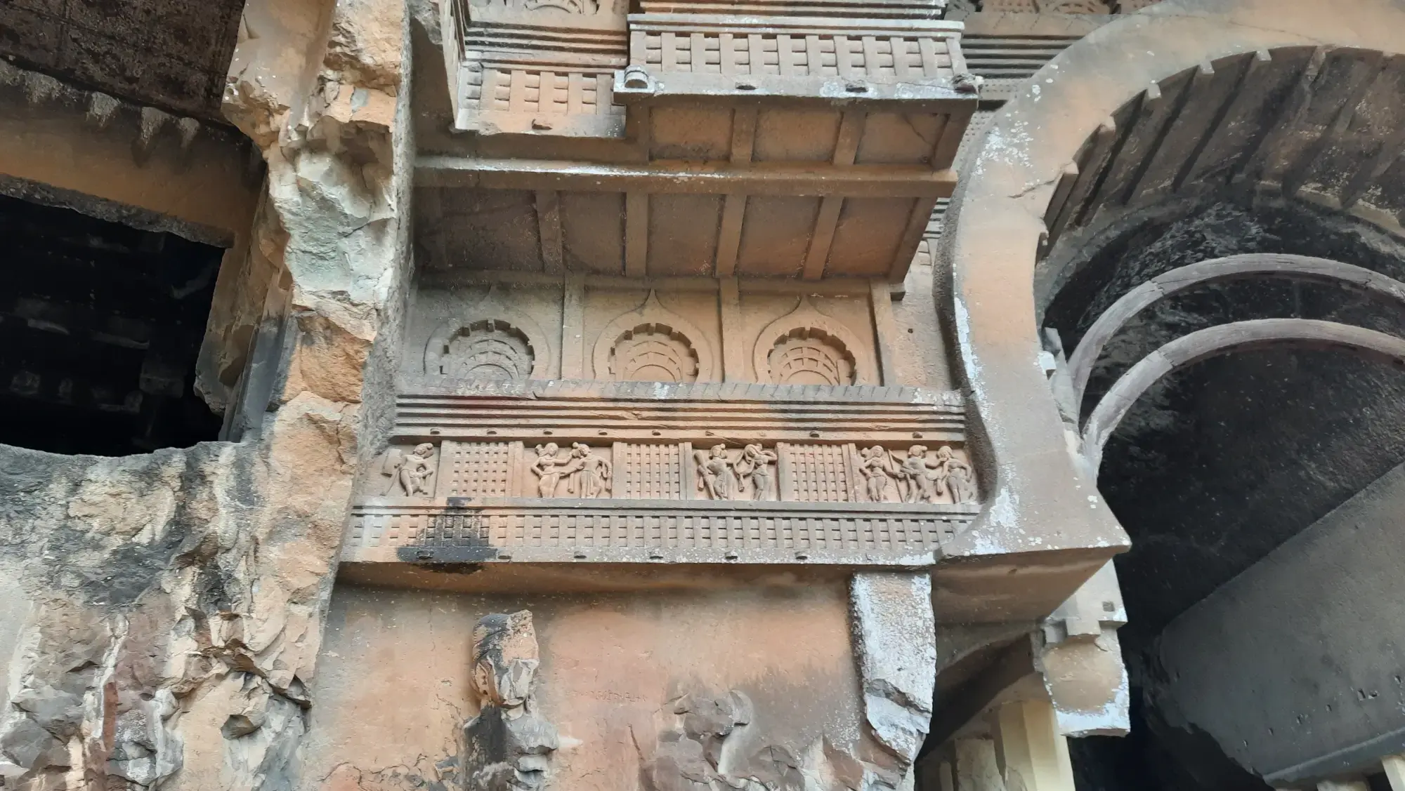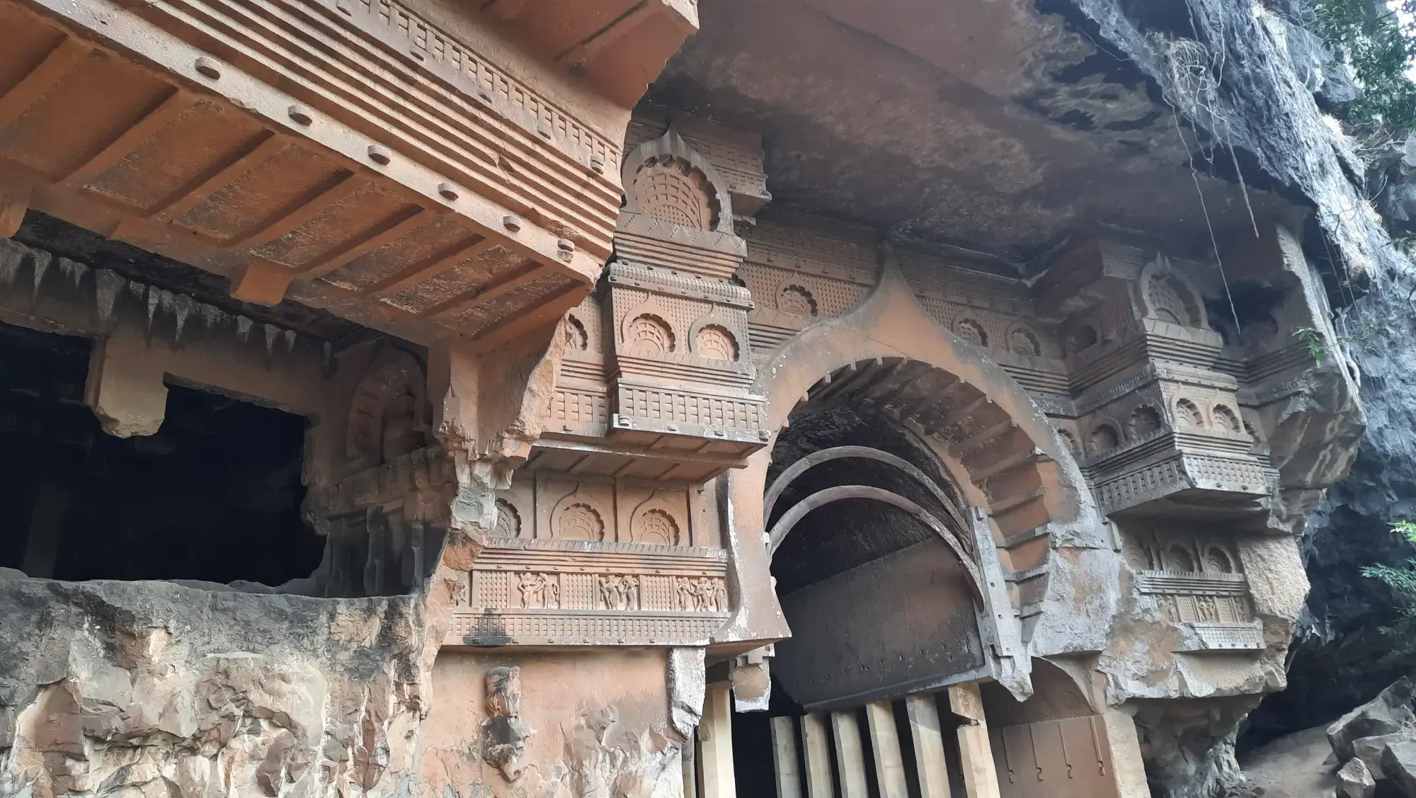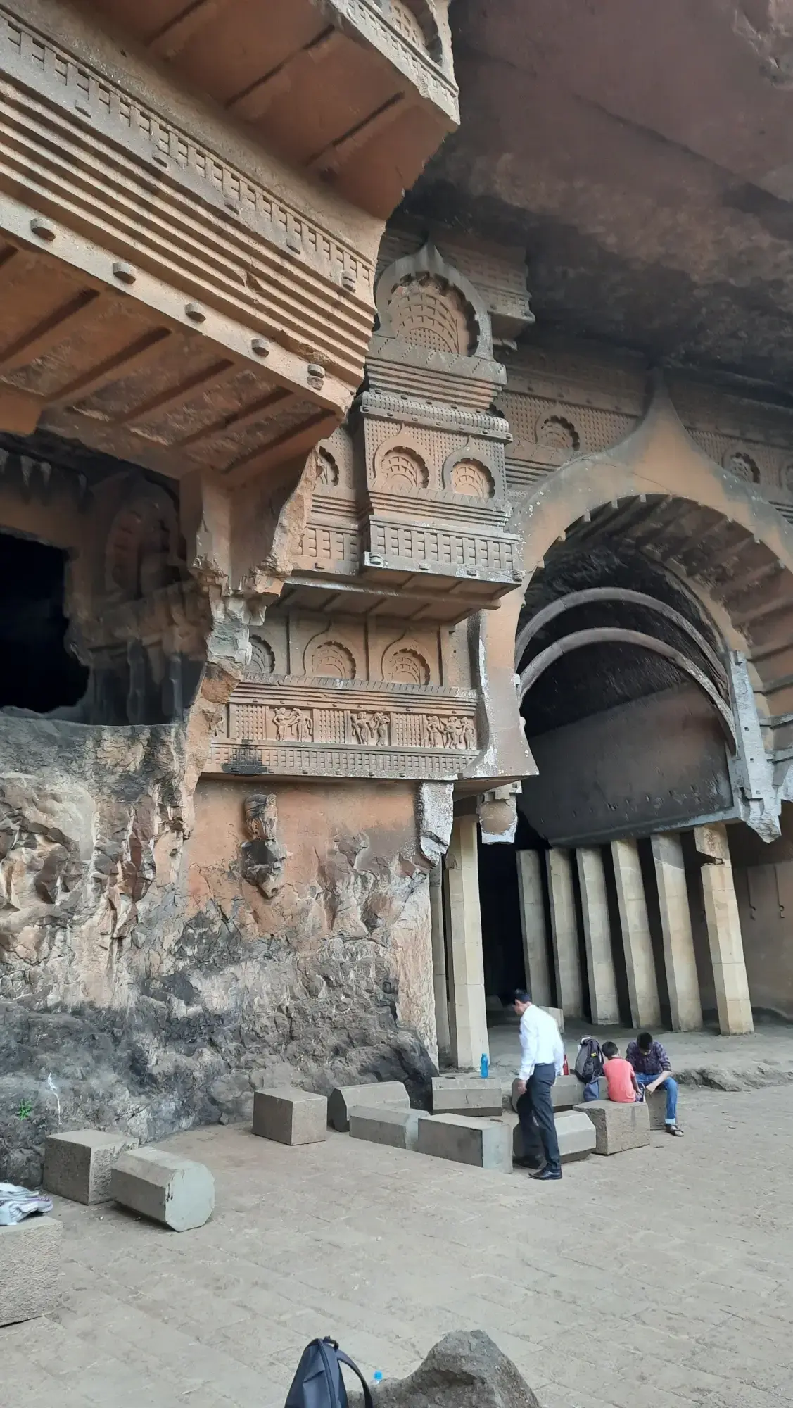 After reaching the top, I rested for a bit and then explored the caves. These caves are man made and are built by excavating rock. These are a small glimpse of Indian Rock Cut Architecture style. These were created by Buddhists and their patrons. They are called Viharas as they used to be facilities where, Buddhist monks, travelers and traders could stay while on the move.