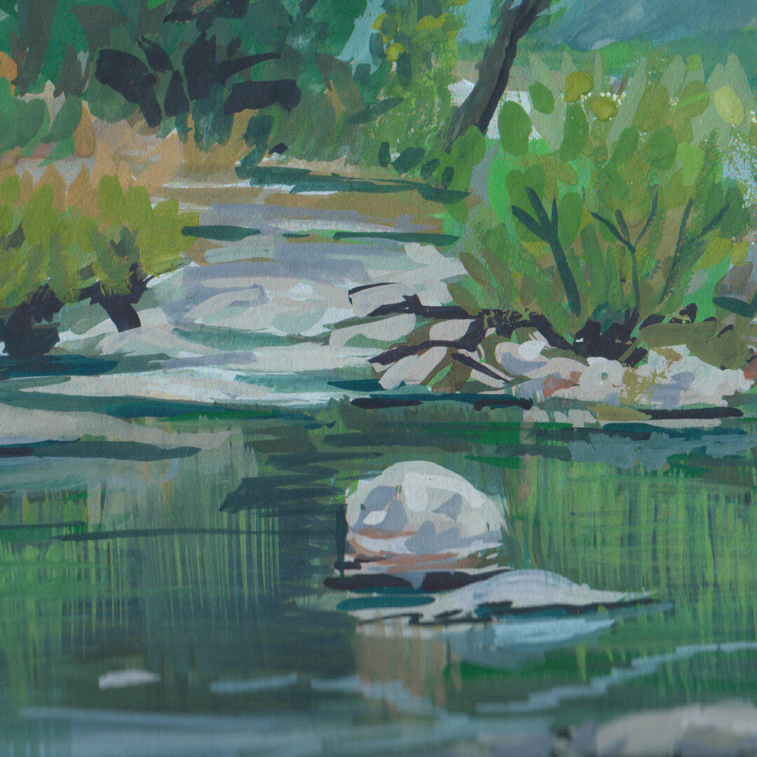 The return trip of this trek was equally exhilarating like the trek to the caves up the mountain. There is Ulhas river at the base of the mountain and it has small village near its banks. The calm and rustic environment was really inspiring. I had brought a sketchbook and some gouache for painting, so we sat down on a rock near the river and started to paint.