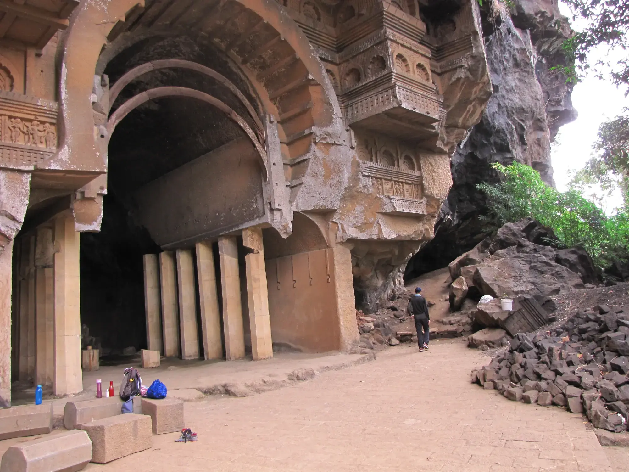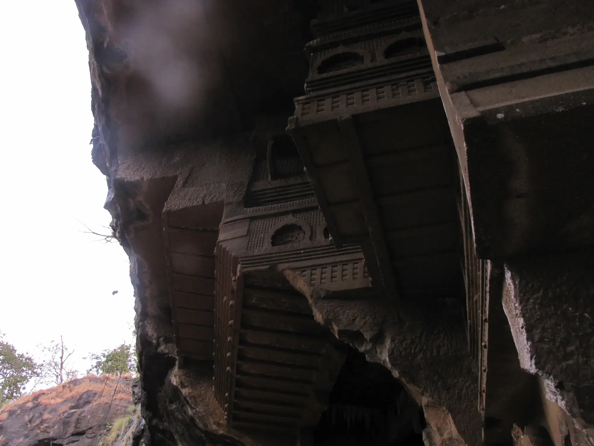 After reaching the top, I rested for a bit and then explored the caves. These caves are man made and are built by excavating rock. These are a small glimpse of Indian Rock Cut Architecture style. These were created by Buddhists and their patrons. They are called Viharas as they used to be facilities where, Buddhist monks, travelers and traders could stay while on the move.